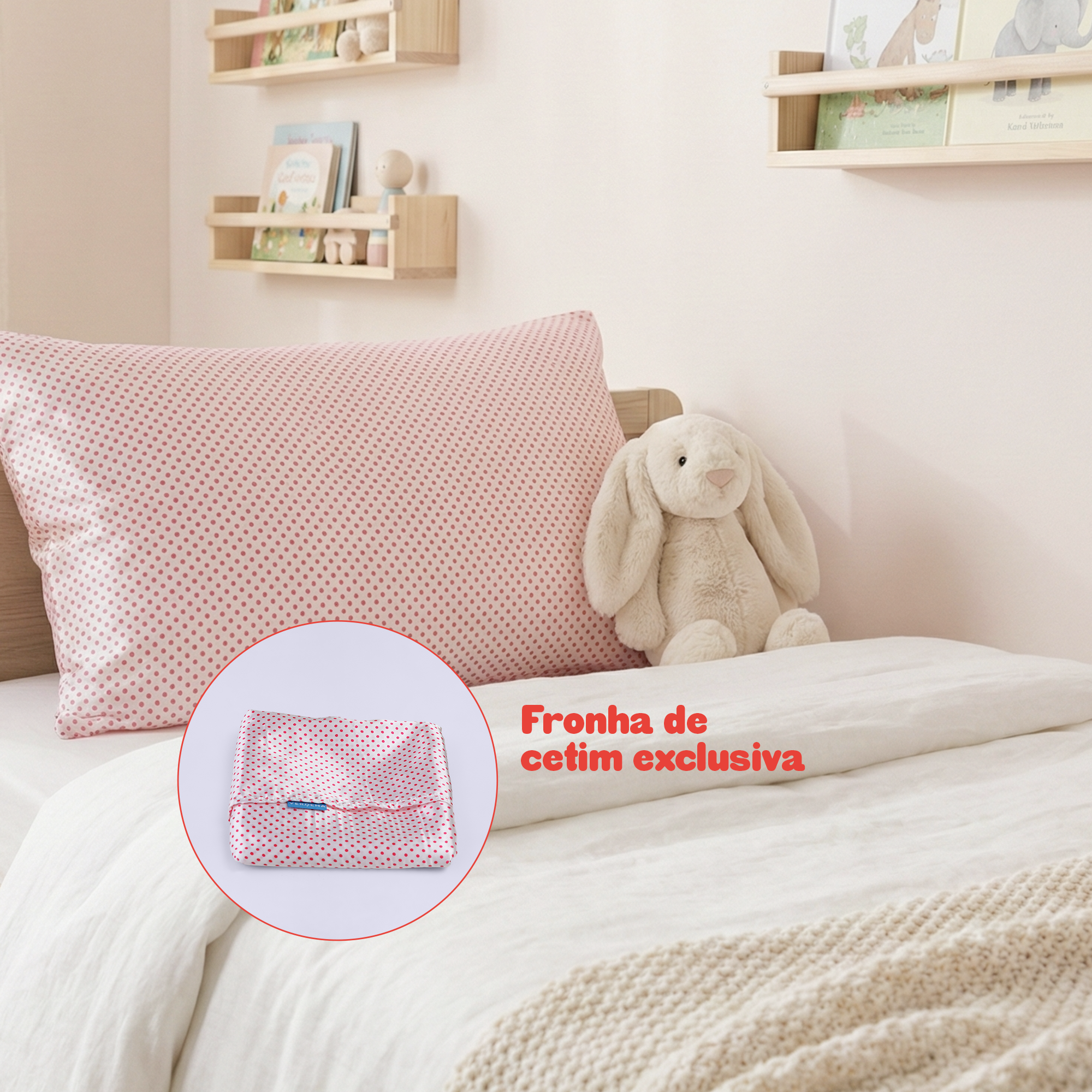 O segredo para manhãs com menos frizz e mais definição. Sua superfície lisa reduz o atrito durante o sono, preservando a hidratação e evitando a formação de nós nos cabelos delicados das crianças.