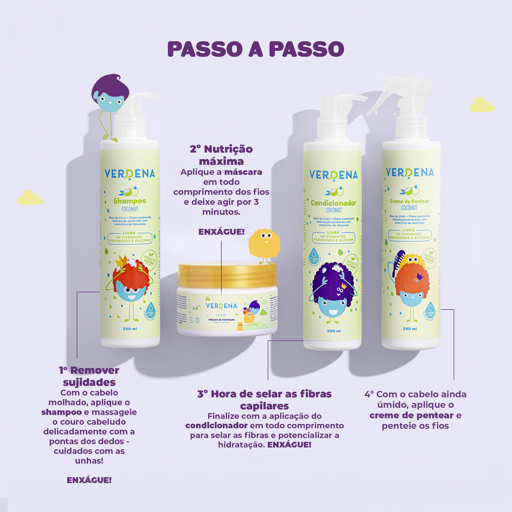 O Condicionador Coconut é o complemento perfeito para o cuidado diário dos cabelos das crianças. Com fórmula vegana e enriquecida com óleo de coco e óleo de avelã, ele hidrata profundamente, condiciona e facilita o desembaraço, deixando os fios dos pequenos mais macios, sedosos e fáceis de pentear.